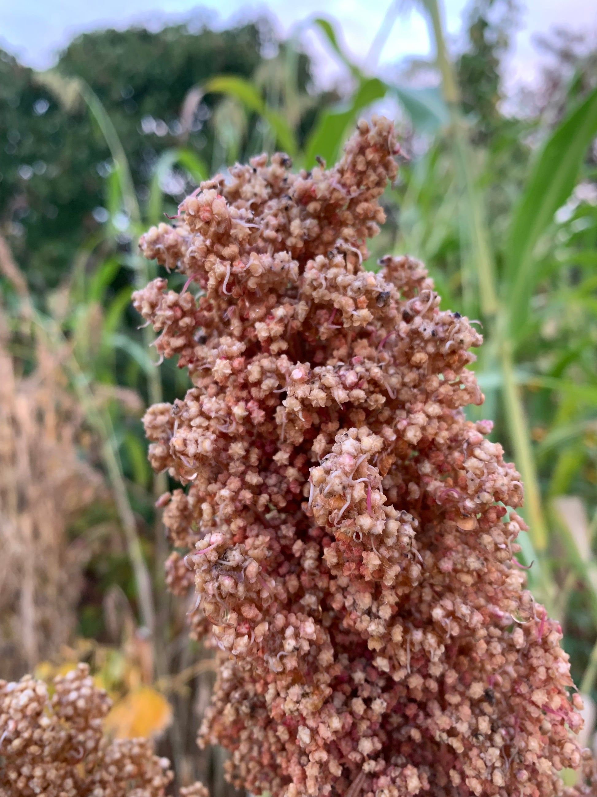 Golden quinoa that generally finishes before the fall rains, very easy to grow and productive grain. Greens also edible.